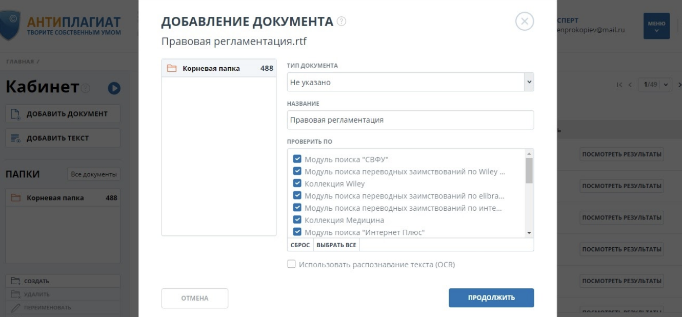 Самое главное отличие: в бесплатном доступе Antiplagiat.ru подключен всего 1 модуль - см. Рис.1. В системе Антиплагиат.ВУЗ есть возможность проверки по всем дополнительным модулям. - см. Рис.2. Например, одним из дополнительных модулей является “Кольцо ВУЗов”.